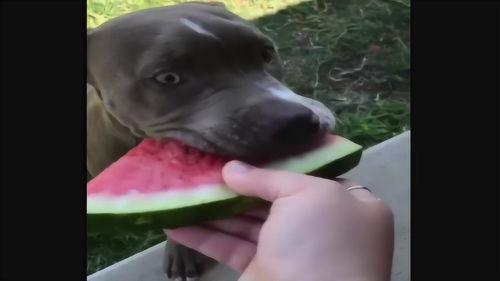 还有一个小视频,主人把西瓜切成小块,然后递给狗狗。狗狗接过来后,竟然把西瓜块扔到了地上,仿佛在说:“我才不要吃这个!”狗狗就开始在地上翻滚,把西瓜块当成了玩具。主人看到这一幕,忍不住笑出了声。